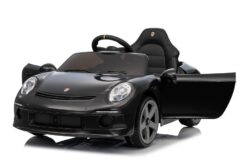 Fahrspaß in edlem Schwarz – Kinder-Elektroauto mit 12V-Antrieb, Ledersitz, EVA-Reifen, MP3 & Strolly-Funktion!